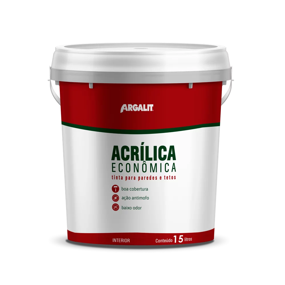 A Tinta Acrílica Econômica Argalit é uma tinta desenvolvida à base de resina acrílica de alto desempenho e fácil aplicação, proporcionando um fino acabamento fosco em superfícies internas. Possui boa cobertura, durabilidade e secagem rápida. Indicada para aplicações nas seguintes superfícies: massas corrida e acrílica, reboco, texturas, gesso e pinturas antigas.