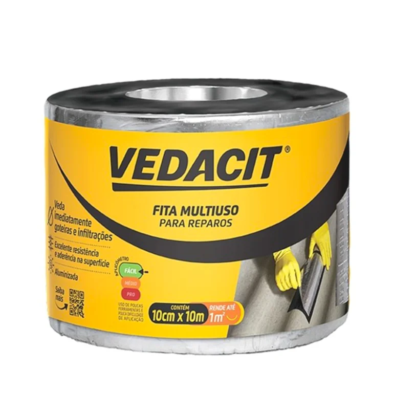 A Fita Multiuso Vedacit é a solução ideal para vedações instantâneas e reparos rápidos em diversos tipos de superfícies. Com alta aderência e resistência à água, ela forma uma barreira impermeável e durável, garantindo proteção imediata contra infiltrações e vazamentos.