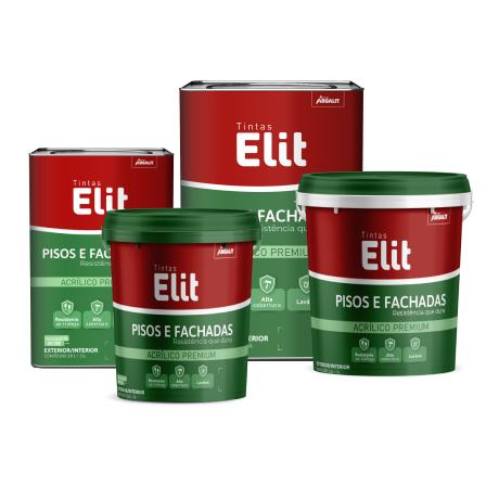 Tinta Elit Pisos e Fachadas vai conquistar você com a alta durabilidade e rendimento incrível. Ela foi especialmente desenvolvida para pisos cimentados, mesmo que já tenham sido pintados antes. Indicada para quadras poliesportivas, demarcação de garagens, pisos comerciais, áreas de recreação, muros e fachadas.
